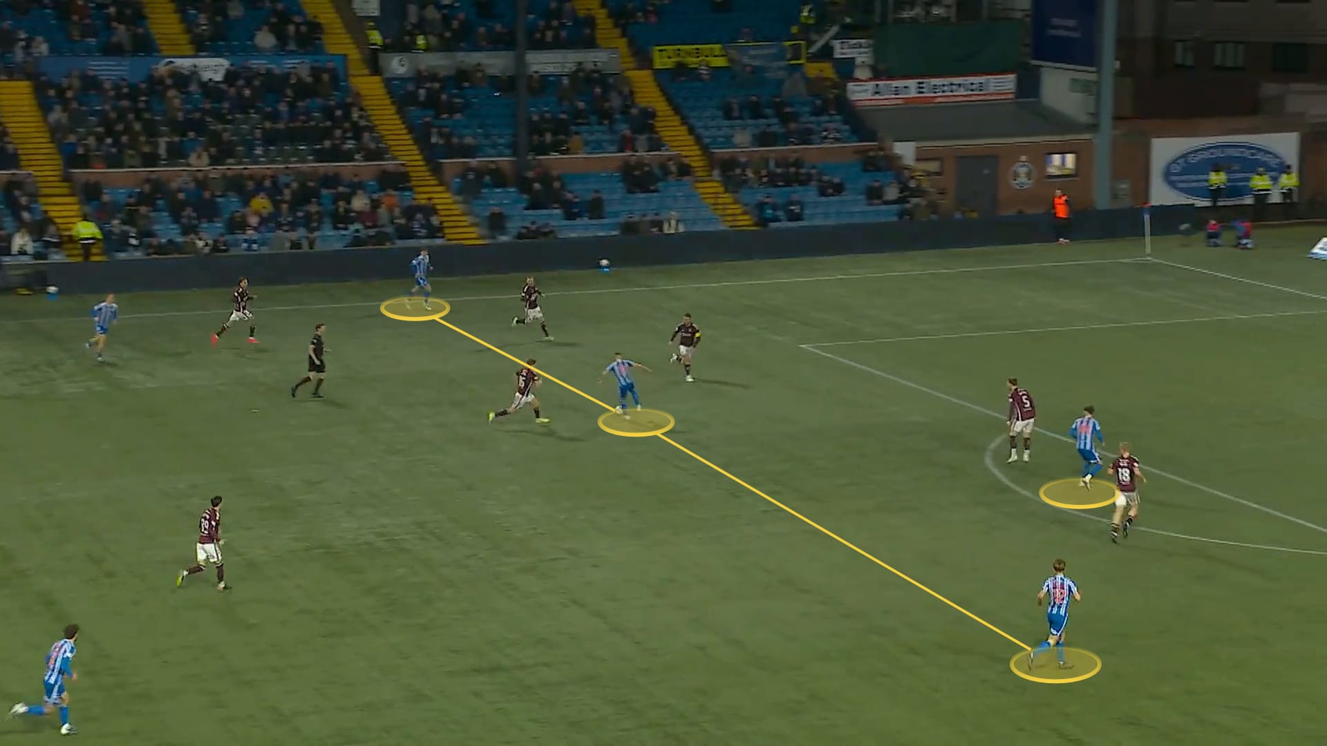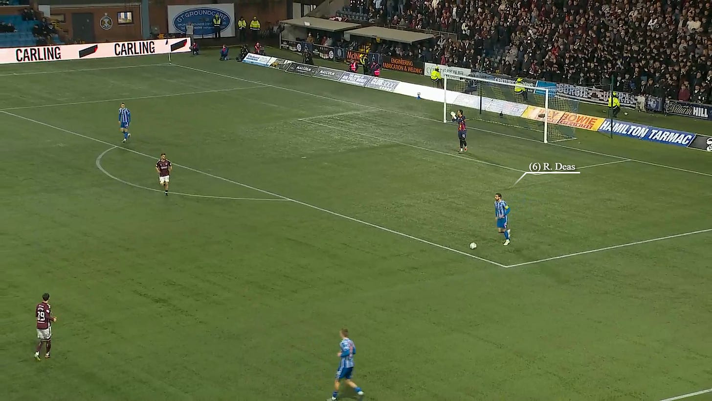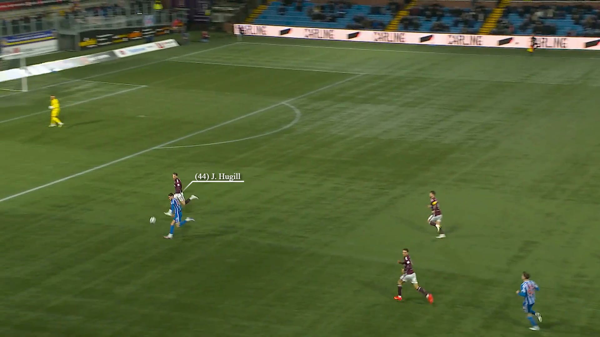 We’ve seen in the past that Deas can be a good distributor of the ball, and there was an early example when he was allowed to pick a raking pass over the top to Hugill.
